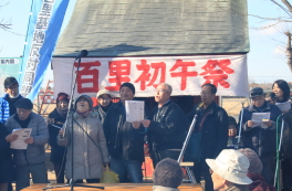 2月11日の初午祭では、百里基地訴訟弁護団の挨拶後に下記の参加7団体より連帯の挨拶がありました。